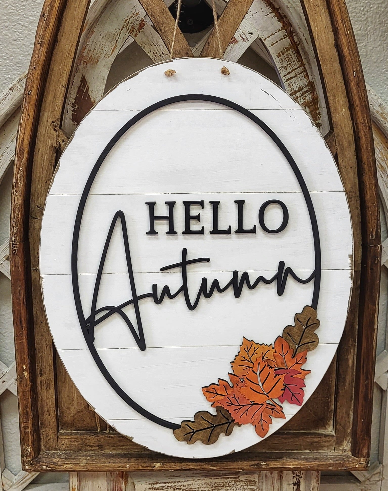 3D Door hanger - Hello Autumn Oval with border and leaves
