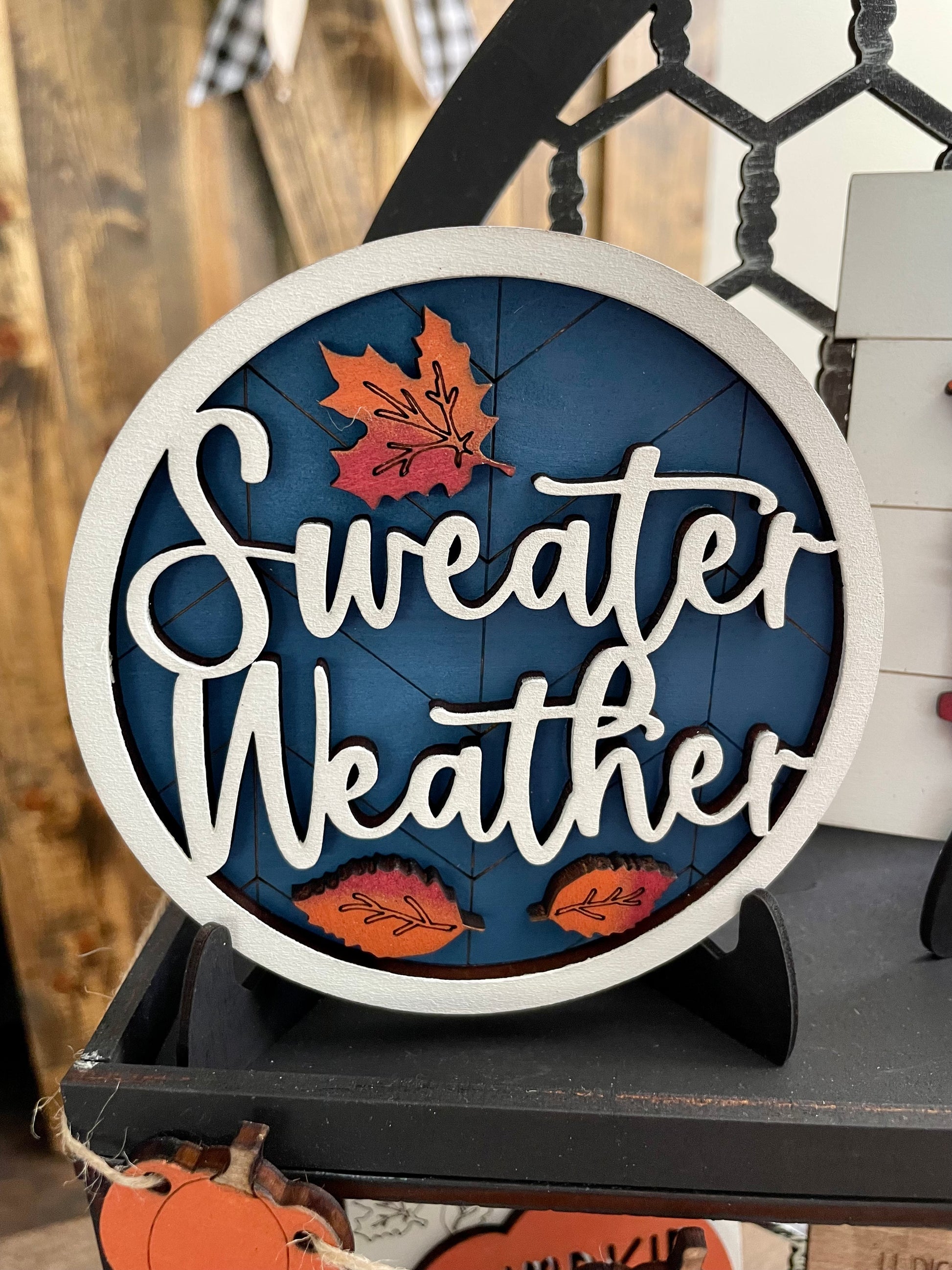 The 3D Pumpkin Tray includes 7 pieces (Sweater weather, Pumpkin Spice Everything, Farm Fresh Pumpkins, Pumpkin patch with truck, Fall Subway art sign, Harvest Acres farm, pumpkin banner)